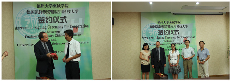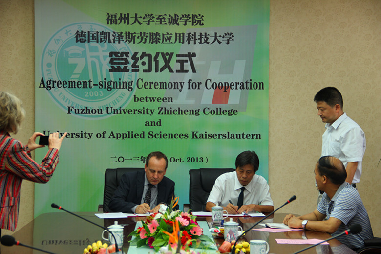 当天下午,六合彩开奖结果 在图书馆四楼会议室召开国凯泽斯劳滕应用科技大学代表团正式欢迎会,并举行了合作协议签订仪式。六合彩开奖结果 院长吴秋明教授、院党委副书记兼副院长雷石宝老师、副院长朱敏琛副教授、院长助理兼两办主任林行老师、物流管理系系主任朱东红副教授、机械工程系主任范扬波副教授、电气工程系主任郑崇苏副教授、土木工程系主任陈友杰副教授、培训部主任高建生副教授、外事办副主任严敏如老师等出席参加了仪式。