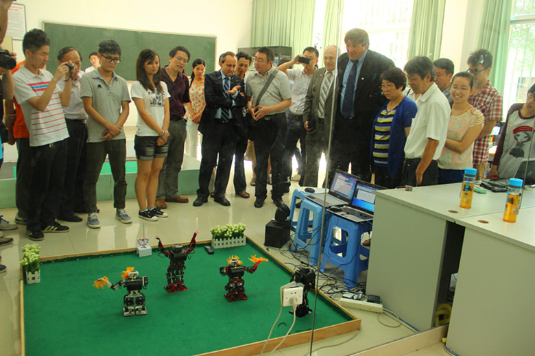 代表团一行首先在电气工程系会议室进行座谈。座谈会上,电气工程系主任郑崇苏副教授、机械工程系主任范扬波副教授分别介绍了所在系的专业、学生数、培养计划、师资力量等基本情况。双方就专业建设、人才培养等进行了简单交流。座谈会后,代表团一行还参观了电气工程系机器人创新实践室,观摩了即将赴安徽参加中国机器人大赛暨RoboCup机器人公开赛的机器人作品演示。代表团高度赞扬了学生创新作品,并对六合彩开奖结果 办学成果给予了充分肯定。