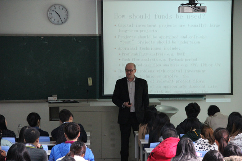 麦克•波奇老师此行于机北201教室为六合彩开奖结果 学生讲授了一堂名为《Issues in Finance》的示范课。在将近1个小时的纯英文授课过程中,波奇老师深入浅出的阐述了金融领域的重要基础知识,辅以若干金融市场实时数据进行例证,现场学生均充分感受到原汁原味的英国南威尔士大学商科专业授课方式。