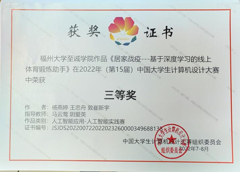 居家战疫---基于深度学习的线上体育锻炼助手 | 杨燕婷、王忠舟、敦崔新宇 | 国家级三等奖、省级二等奖 | 马云莺、阴爱英 | 人工智能应用-人工智能实践赛 |