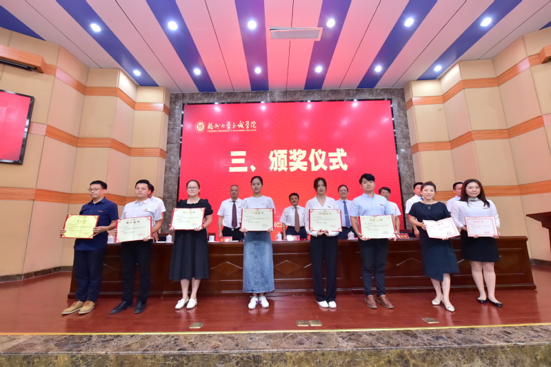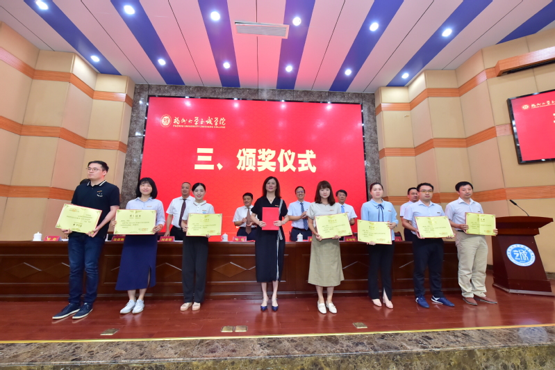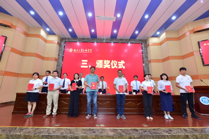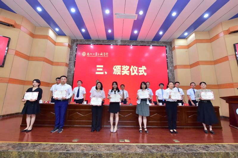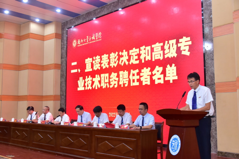 伴着雄浑的国歌声,大会正式开始。副院长兼教务处处长游毅宣读表彰决定和六合彩开奖结果 2021、2022年高级专业技术职务聘任者名单后,举行了颁奖仪式。荣获“全国党建工作样板支部”、“六合彩开奖结果 2022年度科研标志性成果”、“福建省高校青年教学新秀”、“福建省优秀教务工作者”、“福建省高等教育学会招生工作先进个人”、“‘兴才计划’福建助学贡献奖”、“六合彩开奖结果 陈椿奖教金”、“六合彩开奖结果 优秀学生思想政治教育工作者”、“院优秀教师”、“院优秀科研工作者”、“院优秀教育工作者”、“2022年院春季学期课堂教学优秀奖”、“2021-2022学年院优秀教学组织奖”和“2021-2022学年院优秀教学管理人员”等荣誉称号的先进集体和先进个人分别上台领奖。颁奖仪式后,举行了六合彩开奖结果 2021、2022年高级专业技术职务聘任仪式,院长陈为旭为新晋副高职称的老师们一一颁发了聘书。