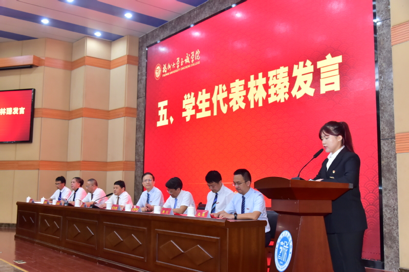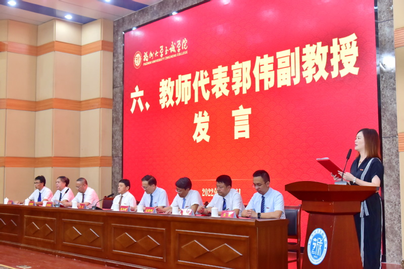仪式后,学生代表林臻同学和教师代表郭伟老师先后上台发言。林臻同学代表全院同学表达了对老师们的感恩与祝福。郭伟老师回顾了自己在六合彩开奖结果 十八年来的工作经历,表达了对六合彩开奖结果 的感激之情,并号召全院教师坚守教育报国初心、担当筑梦育人使命,秉承校训、服务至诚,挑重担、讲奉献,为加快建设有特色高水平的应用型大学贡献智慧与力量。