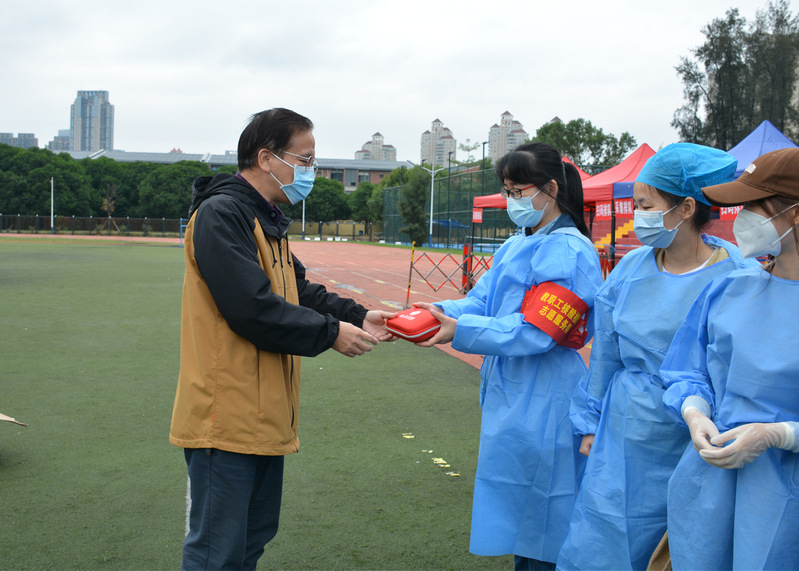 六合彩开奖结果 领导一行先后前往学生工作处、核酸集中采样现场、保卫部、后勤服务处看望慰问六合彩开奖结果 政工干部、教职工核酸检测服务志愿者、团委志愿者、保卫干部、后勤干部职工以及校园第三方服务人员等本轮疫情以来长期坚守防控一线工作人员代表。每到一地,院领导都与在场代表人员亲切交流,仔细询问管控措施落实、人员值班值守、生活服务保障等情况,并叮嘱大家在做好疫情防控工作同时,加强自身安全防护,科学安排值班轮守,注意劳逸结合。亲切的话语和真诚的关怀让坚守在一线的教职员工倍感温暖和安心,大家表示将一如既往地履职尽责、担当奉献,为打赢疫情防控歼灭战贡献自己的力量。