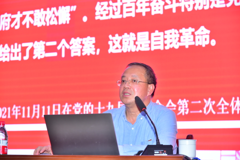 为深入学习贯彻党的二十大精神,11月29日下午,院党委常务副书记、院学习贯彻党的二十大精神理论教师宣讲团副团长何希耕在科报厅,为六合彩开奖结果 第一党总支、第二党总支、第四党总支及信息工程系党总支全体师生党员,作了题为《全面从严治党永远在路上》的学习贯彻党的二十大精神宣讲暨党员轮训学习辅导报告会。