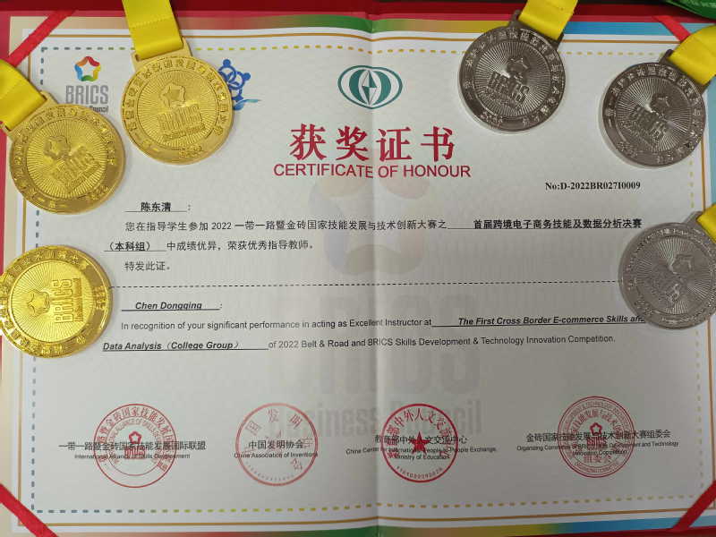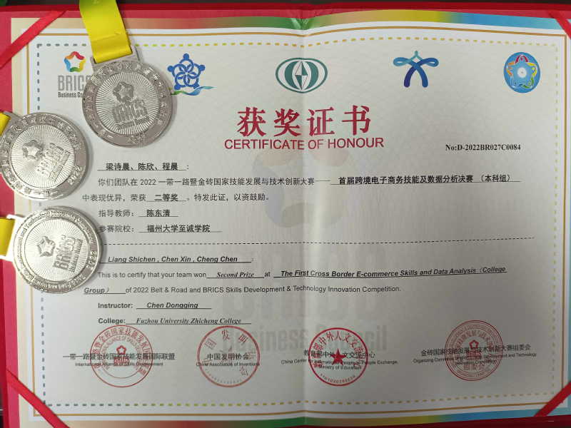 日前,2022一带一路暨金砖国家技能发展与技术创新大赛之“跨境电子商务技能及数据分析”总决赛圆满结束。由2019物流管理连思妤2020物流管理金洪宾、2020物流管理林楚凌同学组成的“无名对”团队(指导老师:陈东清)夺得总决赛一等奖;由2020物流管理梁诗晨、2020物流管理陈欣、2021物流管理程晨同学组成的“对对对”团队(指导老师:陈东清)获得总决赛二等奖。