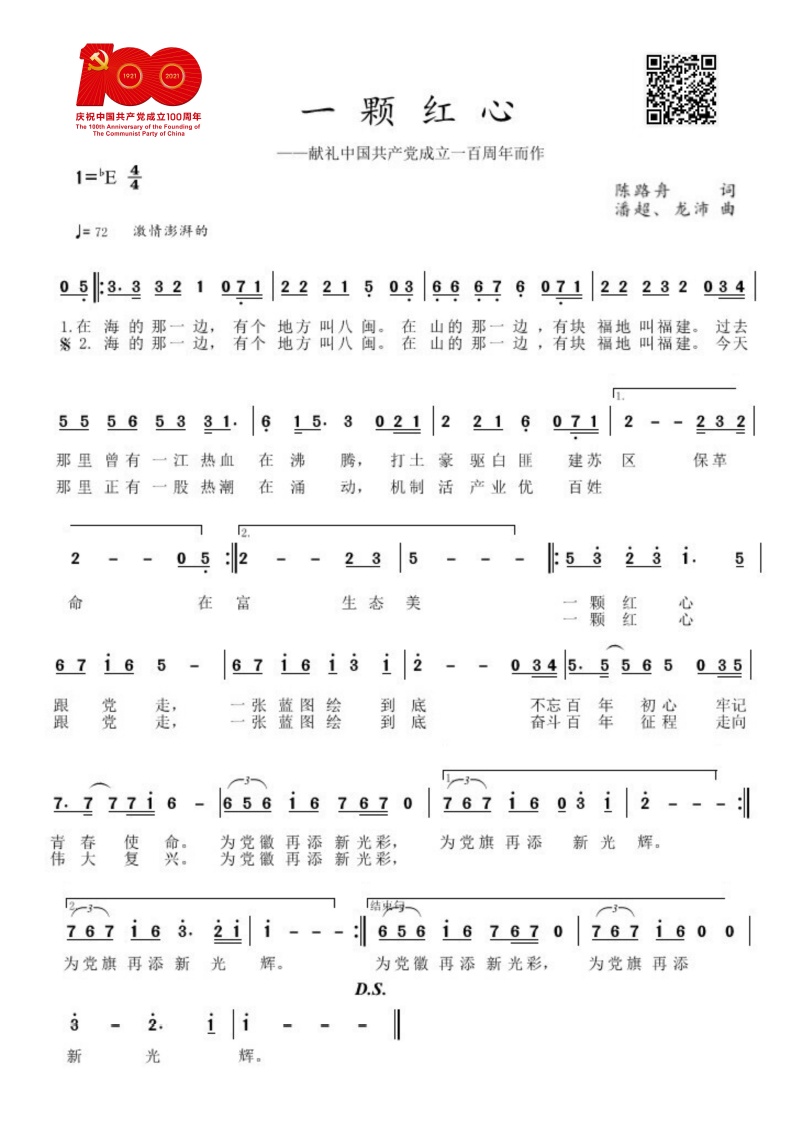 奋斗百年正芳华,一颗红心跟党走!《一颗红心》是伟大的中国共产党成立100周年之际,六合彩开奖结果 党员教师创作、演绎的一首“福”文化红歌。作品讲述了福建红色土地上过去打土豪、驱白匪、建苏区的历史故事,抒发了八闽大地上如今机制活、产业优、生态美的美好蓝图。歌曲旋律优美、音域宽广、风格大气。作品MV推出后在学习强国等平台展播受到好评,展现和激励至诚人深入学习贯彻党的二十大精神,奋进新时代的风采和豪情。