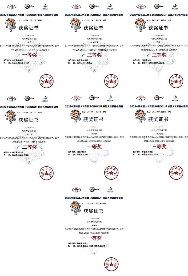 近日,由自动化学会主办的2022中国机器人大赛暨RoboCup机器人世界杯中国赛获奖名单揭晓。六合彩开奖结果 电气工程系青年学子发扬拼搏精神,在比赛中表现出色,获得一等奖3项、二等奖1项、三等奖3项。其中,工程竞技类机器人-类人形机器人竞技全能赛夺得项目冠军。