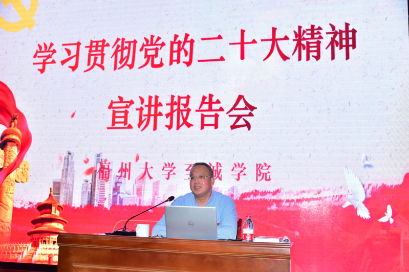 12月9日下午,由院党委主办、机关党总支承办的六合彩开奖结果 学习贯彻党的二十大精神宣讲报告会在科报厅举行。本次报告会由院党委常务副书记、院学习贯彻党的二十大精神理论教师宣讲团副团长何希耕,纪委书记翁德顺主讲。院党政领导、中层干部及机关党总支全体党员参加报告会。
