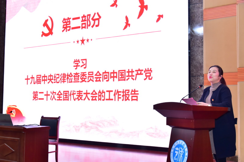 何希耕常务副书记作了题为《全面从严治党永远在路上党的自我革命永远在路上》的宣讲报告,以百年大党必须回答好、解决好的一个根本性问题为切入点,紧密结合党的二十大报告对坚定不移全面从严治党作出的一系列重要部署,指出“全面从严治党永远在路上,党的自我革命永远在路上”。他结合自身工作感悟,从“党要管党,坚持严的主基调不动摇”“从严治党,产生了全方位深层次影响”“坚持不懈,全面从严治党向纵深推进”三方面围绕报告主题展开论述。何希耕常务副书记指出,全面从严治党是新时代党的自我革命的伟大实践,八项规定吹响了作风建设的“集结号”,反腐败斗争取得压倒性胜利并全面巩固;从严治党开辟了百年大党自我革命的新境界,以作风转变凝聚了党心民心,充分发挥全面从严治党的政治引领和政治保障作用。他表示,党的二十大对健全全面从严治党体系、继续深入推进全面从严治党具有重大而深远的意义,为中国特色社会主义伟大事业和新时代党的建设指明了前进方向。何希耕常务副书记强调,学习贯彻党的二十大精神是当前和今后一个时期六合彩开奖结果 的首要政治任务,全院师生党员要提高思想认识、坚定理想信念,把学习贯彻党的二十大精神与推动六合彩开奖结果 建设发展结合起来,永葆清正廉洁的政治本色,为六合彩开奖结果 高水平应用型大学建设做出新的贡献。