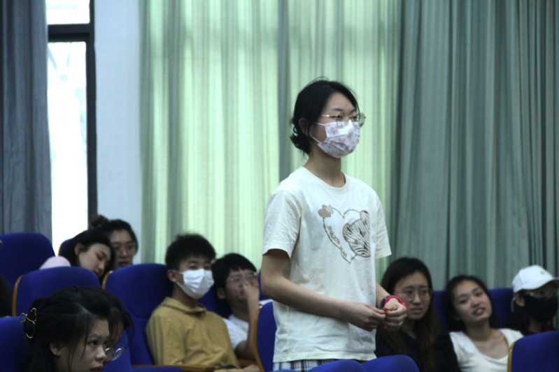 在与大家的互动提问环节中,有同学提出,写关于“速度与激情”的论文时要怎么运用隐喻。对此,潘红教授耐心指导,她指出,隐喻是一个很好的修辞手法,同学们需要广泛地阅读相关论文文献,领悟其内涵才能在论文中合理地运用,并达到表达的最佳效果。她还建议同学们平时要多阅读,注意积累。