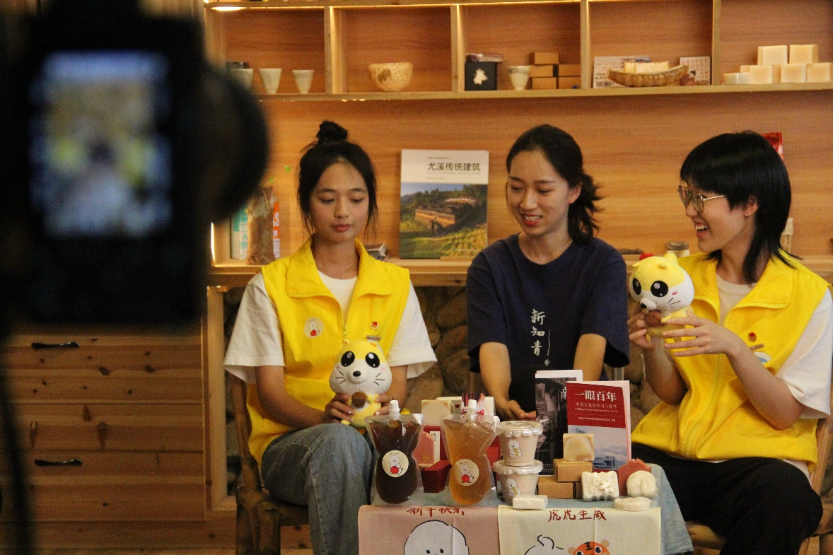 实践队围绕当前农业农村发展的重要问题和农民反映的实际问题深入开展调查研究,走进“哈哈青年”直播间,以实际行动真实体验推销直播产品,宣传半山村特色旅游文化,助力乡村振兴。实践团队聚焦乡村振兴,将理论与实践、产品与互联网充分结合,秉承着半山村特色的三诚精神原则:诚实、诚信、诚心,将尤溪县半山村特色产品及艺术创意文创产品的形象通过先进的直播技术进行传播,为乡村振兴注入青春力量,绘就全面乡村振兴的壮美画卷。
