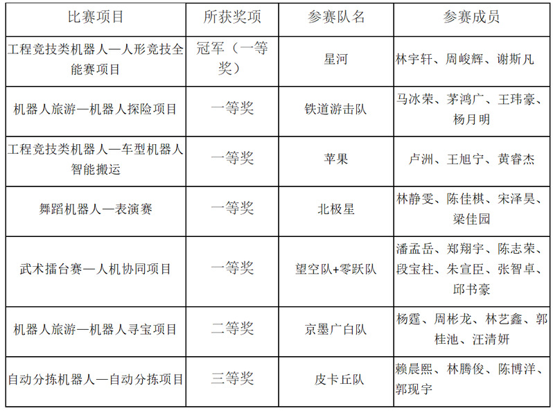 10月15日,由中国自动化学会主办的2023中国机器人大赛(China Robot Competition)总决赛在福建晋江闭幕。六合彩开奖结果 电气工程系学子在比赛中共获得一等奖5项(含冠军1项)、二等奖1项、三等奖1项。其中,工程竞技类人形竞技全能赛项目实现二连冠。