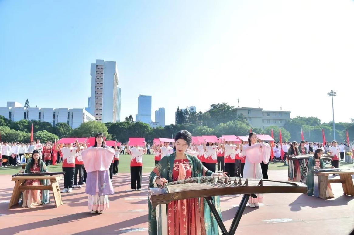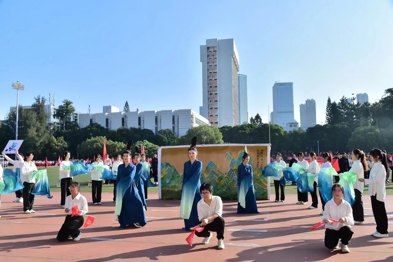 入场式上,伴随着激昂的《运动员进行曲》,国旗护卫队、院旗队、会徽队与彩旗队依次整齐划一地走过主席台,展示了昂扬的精神风貌。随后,各系代表方阵入场并带来各具特色的表演:信息工程系展示了从古至今的通讯方式演变,回顾历史、走进现在,活泼又颇具时代意义;人文艺术系的乐器合奏与舞蹈结合,体现了浓厚的校园艺术氛围;电气工程系方阵喊出“为国家所需而奋斗”的口号,振奋人心,突显了新时代青年的青春担当;传媒与设计系用带来的只此青绿,曼妙舞姿展现青春活力......各系方阵别出心裁,独具匠心,让观众印象深刻。院啦啦队与院跳绳协会随后也登场亮相,带来活力四射的表演。