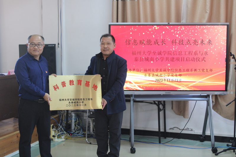 为强化社会服务功能,助力青少年科普知识教育和科技能力培养,日前,信息工程系启动了与永泰县城南小学“信息赋能科普,科技点亮未来”共建项目。项目启动仪式11月23日在城南小学举行。
