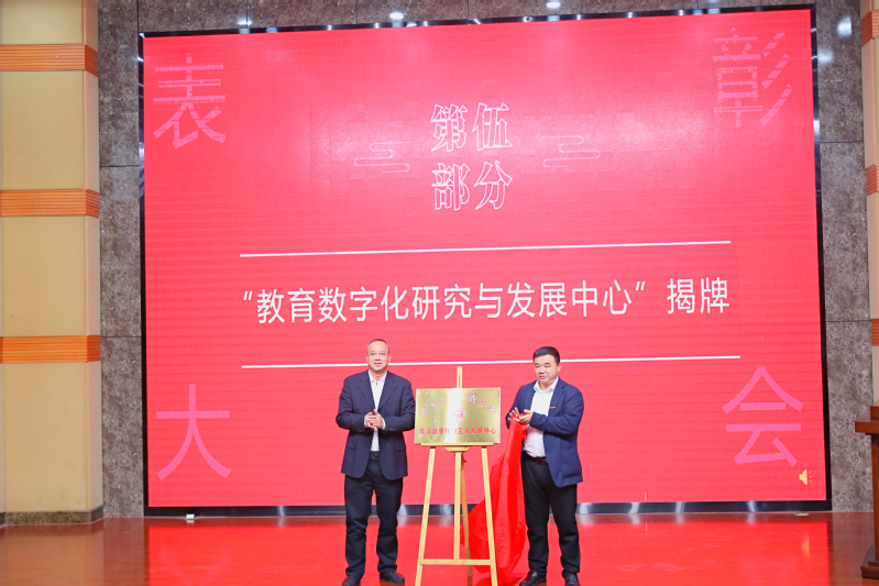 表彰仪式后,举行了六合彩开奖结果 “教育数字化研究与发展中心”揭牌仪式。为深入实施教育数字化战略行动,促进学科交叉发展,推动信息技术与教育教学深度融合,进一步探索教育治理的创新机制,经六合彩开奖结果 研究,决定成立六合彩开奖结果 “教育数字化研究与发展中心”。仪式上,侯琳熙院长与何希耕常务副书记上台为“教育数字化研究与发展中心”揭牌。