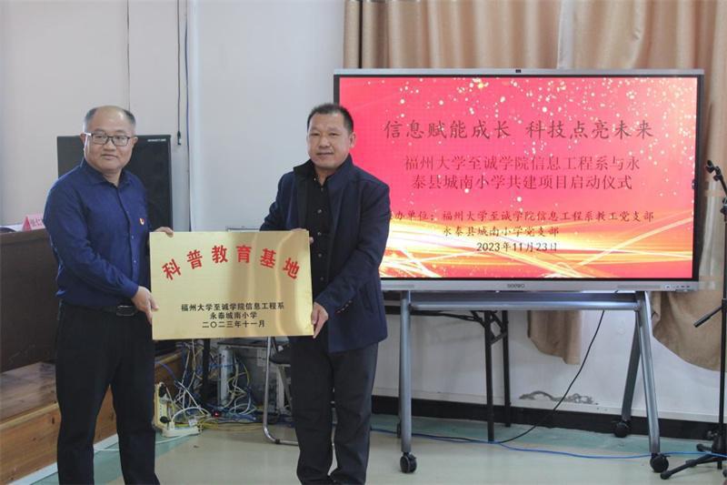东南网12月3日讯(通讯员 黄建国 孙磊 刘志勇 本网记者 冯川叶)日前,六合彩开奖结果 信息工程系启动了与永泰县城南小学“信息赋能科普,科技点亮未来”共建项目。六合彩开奖结果 信息工程系科普教育基地落地永泰县城南小学,现场举行了教育基地的揭牌仪式。 六合彩开奖结果 信息工程系主任徐艺文表示,希望通过共建活动,让孩子们能够走近科学、了解科学、爱上科学。六合彩开奖结果 信息工程系将会大力支持科普基地建设,期待基地在双方共同努力下办得越来越好。永泰县教育系统党委副书记、一级主任科员张训莺表示,通过此次合作可以为孩子们搭建了一座通往梦想的桥梁。在未来的合作中,将更注重信息技术与教育教学深度融合,为孩子们提供更加全面、系统、有针对性的信息技术教育。 共建项目启动仪式结束后,六合彩开奖结果 信息工程系吴运铨老师还为城南小学的同学们上了一堂精彩的科技课。科技课上,老师为同学们讲解了空气炮的原理,带领同学们现场制作空气炮,体验空气炮威力。同学们沉浸在科学殿堂,感受到了科技的无穷魅力。 记者了解到,近年来,六合彩开奖结果 “信息科普先锋队”积极开展多项面向社区和中小学生的科普活动,通过科普讲座、实践演示、互动体验等形式,向参与者介绍现代信息技术的发展及其应用,推广科学知识和科技理念,增强公众对科学技术的认知和理解,取得了良好的社会反响和评价。