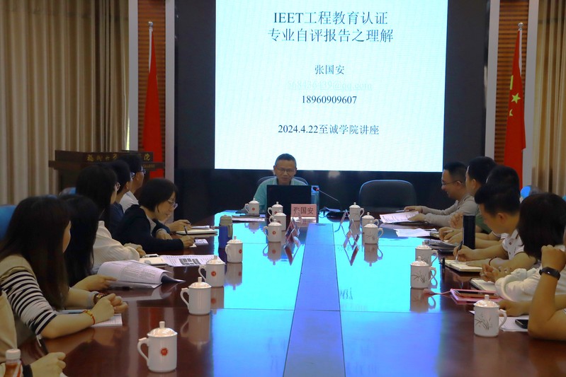交流会上,张国安教授简要介绍工程教育专业认证的意义及必要性,阐述了工程教育专业认证所遵循的以学生为中心、目标导向教育、持续改进三大核心理念。张教授结合福建理工大学计算机科学与技术专业IEET的认证过程,从IEET认证的重要规范、自评报告书撰写规范、佐证材料准备、实地访评等方面进行了详细的讲解与经验分享。