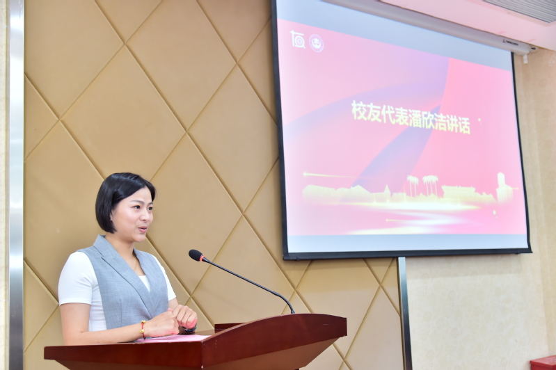 校友代表、土木工程系校友会副会长2010届土木工程专业潘欣洁代表各届校友对土木工程系校友会的成立表示祝贺,回顾了在校期间的学习生活,对母校对自己的教育培养表达了感谢,并表示将积极配合校友会工作,加强与母校的联系交流,推动校友工作迈上新台阶。