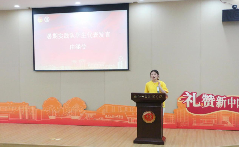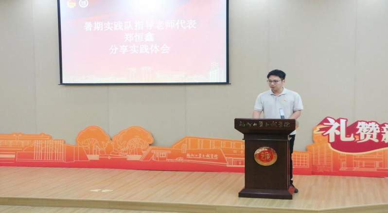 仪式上,数据科学与统计系团委书记、“寻非遗茶画,弘新桥传统技艺”实践队指导老师郑恒鑫作为教师代表,结合《习近平与大学生朋友们》(第二卷)分享实践体会。接着,“健康乡村‘食’践行·科技助农促振兴”实践队由涵兮同学作为学生代表发言。