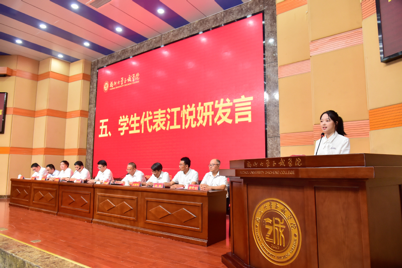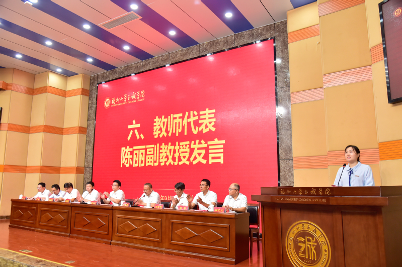 学生代表电气工程系团委副书记、班级团支书江悦妍同学,教师代表2024年度六合彩开奖结果 第三届“陈椿奖教金”获得者、六合彩开奖结果 2023-2024年“优秀科研工作者”材料工程系陈丽副教授随后分别上台发言。江悦妍同学代表全体同学真挚表达了对老师们的深深感恩与祝福;陈丽副教授在感谢六合彩开奖结果 栽培之恩的同时,号召全院教职员工要心存家国情怀,锤炼高贵德行,夯实专业功底,不断完善自我,与至诚共成长。