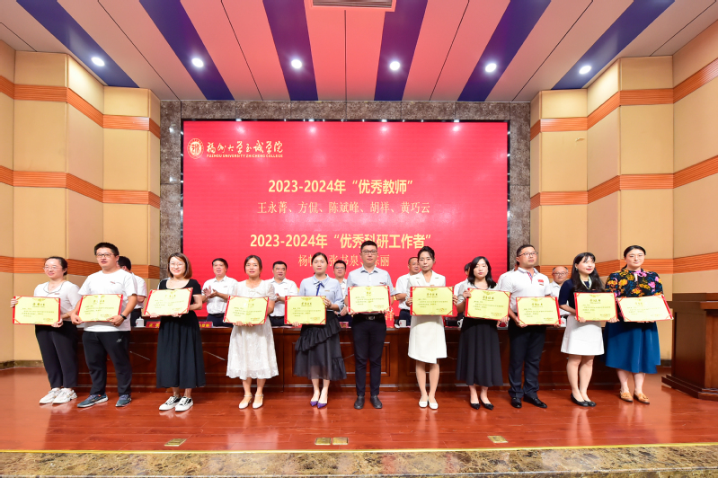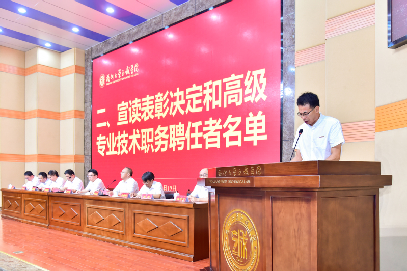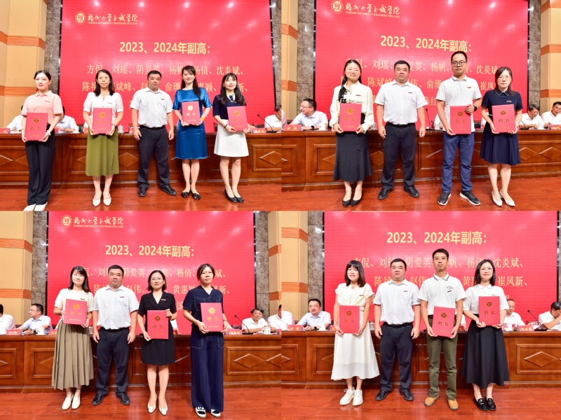 伴着雄浑的国歌声,大会正式开始。副院长游毅教授宣读完表彰决定和高级专业技术职务聘授者名单后,举行了颁奖仪式,表彰了两年来在教学科研、招生就业、学科竞赛、师资队伍建设、校园文化建设、校企合作、产教融合等方面做出突出业绩的先进集体和先进个人,共同感受榜样精神、致敬向上力量。颁奖仪式后举行了聘授仪式,院长侯琳熙教授为2023、2024年聘授为高级专业技术职务的教职工一一颁发聘书和资格证书。