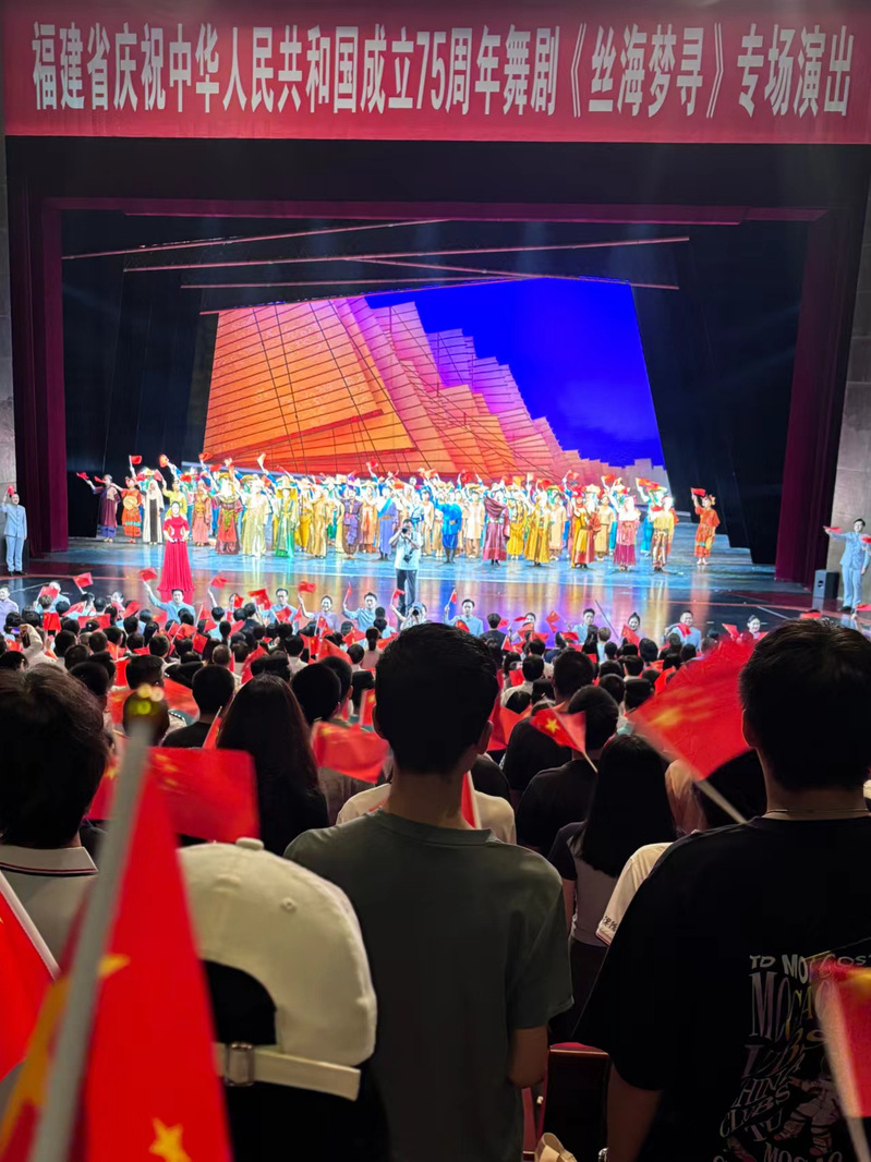 9月30日晚,福建省庆祝中华人民共和国成立75周年舞剧《丝海梦寻》专场演出在福州举行。院党委副书记林文麟带领六合彩开奖结果 师生代表一行40余人到场观看演出,共同庆祝新中国75周年华诞。