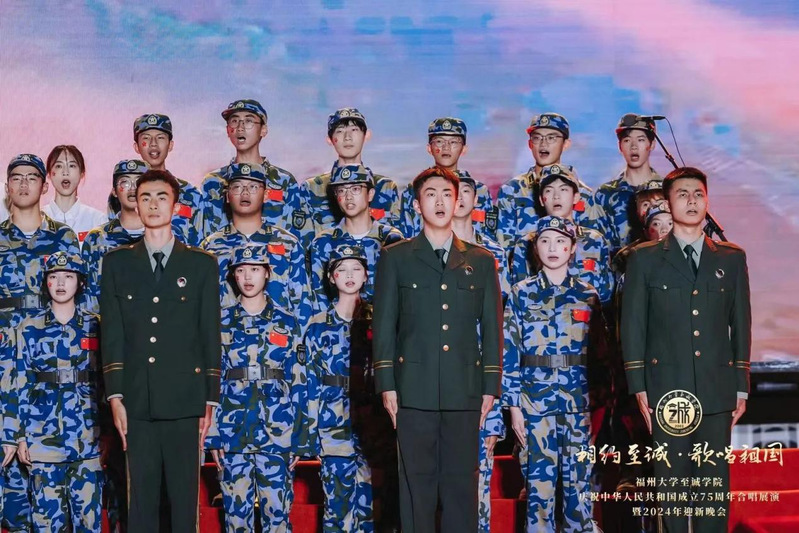 合唱曲目《如愿》带动现场气氛,《我的祖国》展现莘莘学子的爱国之情,《祖国不会忘记》、《强军战歌》向军人致以最崇高的敬意。