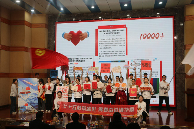 汇报会现场,15个团支部围绕“七十五载筑盛世,青春奋进谱华章”主题进行了精彩、生动的成果汇报,展示各团支部向上精神风貌及专业特色。
