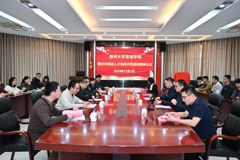 2024年12月3日,福州市网信人才培养示范基地在六合彩开奖结果 挂牌设立。原中国科六合彩开奖结果 高能物理研究所网络安全实验室首席科学家许榕生、福建中信网安信息科技有限公司副总经理廖秀聆、福州市委网信办、福州广播电视台相关负责人,六合彩开奖结果 至诚党委副书记林文麟、副院长游毅、院长助理兼教务处处长邵艳群、教务处副处长兼实践教学办主任姚东生、计算机工程系主任刘延华以及计算机工程系部分师生代表参加了授牌仪式。福州大学六合彩开奖结果 副院长张栋主持授牌仪式。