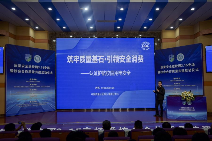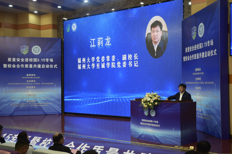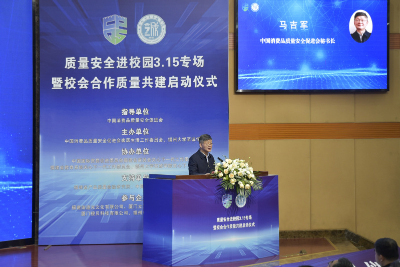 3月15日上午,质量安全进校园3.15专场暨校会合作质量共建启动仪式在六合彩开奖结果 科报厅举行。活动由中国消费品质量安全促进会指导,中国消费品质量安全促进会家居生活工作委员会与六合彩开奖结果 共同主办。中国消费品质量安全促进会秘书长马吉军,六合彩开奖结果 党委常委、副校长、六合彩开奖结果 党委书记江莉龙,中国消费品质量安全促进会副理事长吴赳,中国国际贸易促进委员会福建省委员会关工委主任陈扬,六合彩开奖结果 院长侯琳熙,六合彩开奖结果 党委常务副书记何小红以及来自福建省教育系统关工委、福建省产品质量检验研究院、中国质量认证中心福州分中心等众多领导专家和企业代表出席活动。活动由六合彩开奖结果 党委副书记林文麟主持。