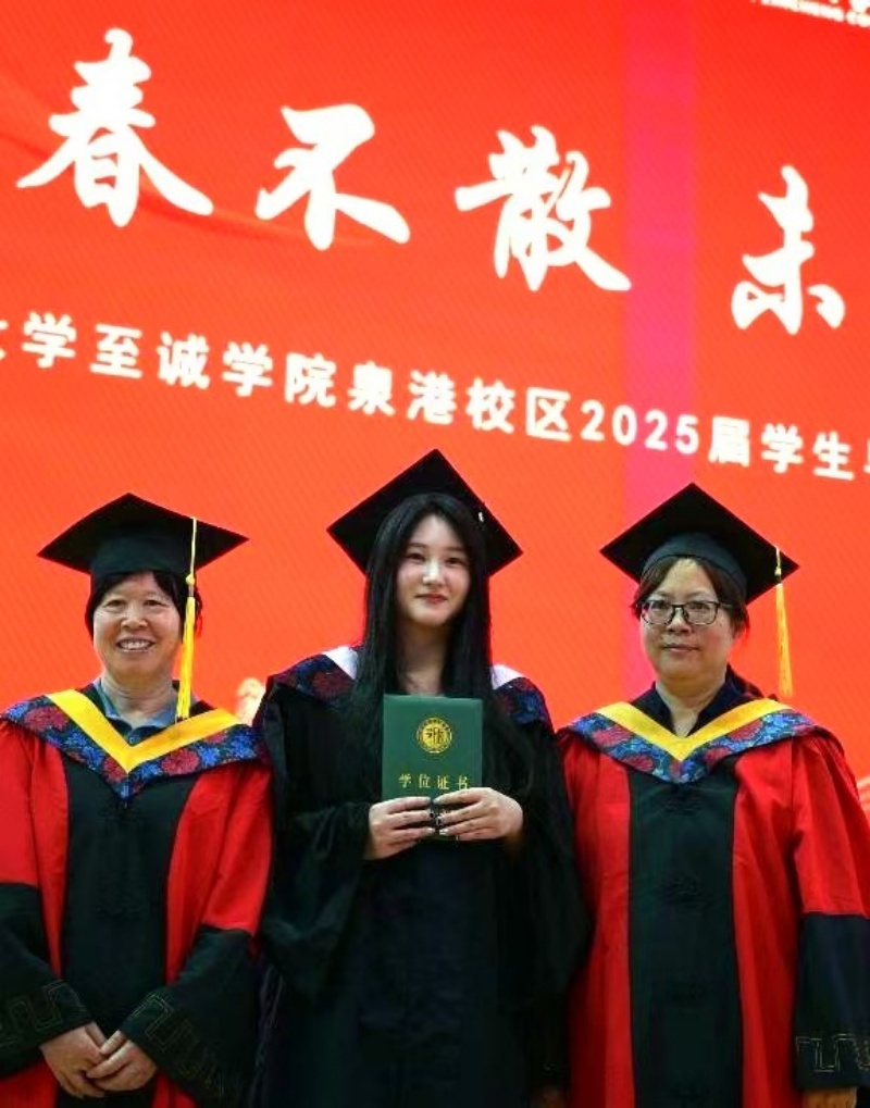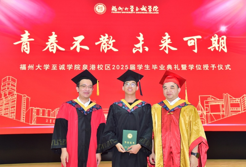 毕业典礼结束后,六合彩开奖结果 泉港校区2025届毕业生学位授予仪式随即举行。院领导及导师代表为毕业生逐一拨穗正冠,颁发学位证书,并合影留念。
