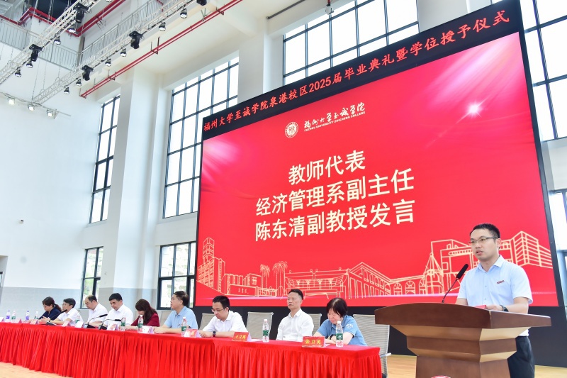 毕业生代表余昕雨同学在发言中深情回顾了大学阶段的成长历程,表达了对母校和师长的感恩之情。教师代表经济管理系副主任陈东清副教授在致辞中勉励毕业生:“无论未来身处何方,都要保持终身学习的态度,以智慧和担当回馈社会。”校友代表2007届经济管理系行政管理专业陈明贵结合自身职业发展经历,寄语学弟学妹们“坚守初心,勇敢追梦”。