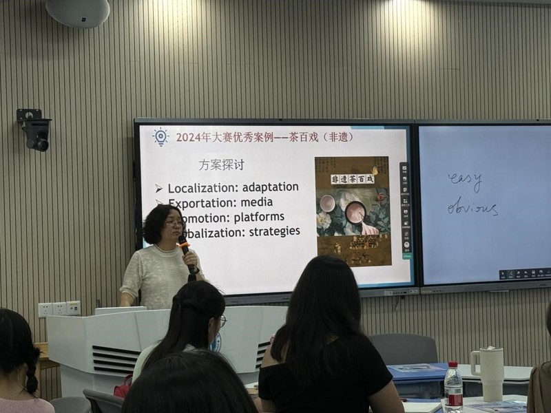 7月5日上午,来自复旦大学的时丽娜副教授为参营学员们带来了精彩的讲座。她介绍了跨文化能力测试及其对于大学生在跨文化知识技能积累储备方面的积极影响;她也向大家完整介绍了全国大学生跨文化能力大赛从校赛到省赛、国赛的组成部分、发展历程、新变化及备战今年大赛要注意的细节。她慷慨分享了自己指导学生开发案例的过程,以及学生们在备赛中可能出现的各种小状况。在场学生们都被时老师充满睿智又风趣幽默的教学深深打动。