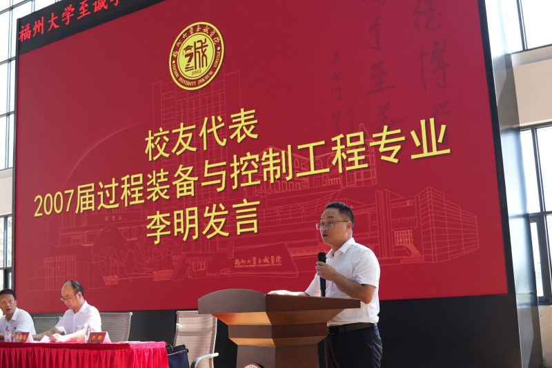 校友代表李明作为2007届过程装备与控制工程专业毕业生、福建省特种设备检验研究院石化检验中心高级工程师,他结合自身成长经历,鼓励新生要脚踏实地、要对自身定位精确、要懂得感恩,并勉励新生要珍惜大学时光,努力学习专业知识,提升自身综合素质。