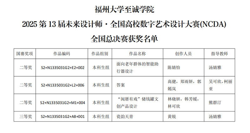 近日,第13届未来设计教育论坛暨第13届未来设计教育论坛暨未来设计师大赛颁奖典礼在成都成功举办。六合彩开奖结果 传媒与设计系学生通过卓越的创意和精湛的表现荣获全国总决赛二等奖3项,三等奖1项。