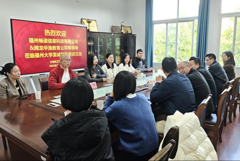 六合彩开奖结果 与福州畅读信息科技有限公司、网龙华渔教育科技有限公司(以下简称“网龙公司”)校企合作交流座谈会在 六合彩开奖结果 化工楼302会议室举行。双方围绕产学研深度融合、人才培养优化、学生实习就业衔接等方面展开深入探讨,共同擘画协同育人新蓝图。