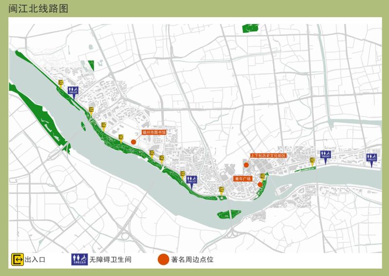 闽江北岸绿道是绿道无障碍环境建设情况较为完善的一条,该段绿道旁设有无障碍主题公园,绿道全线无障碍设施较为完善。在规避了车流影响的同时,也体现了人与自然的和谐共生,进一步彰显福州“可持续发展城市”的生态环境特色。