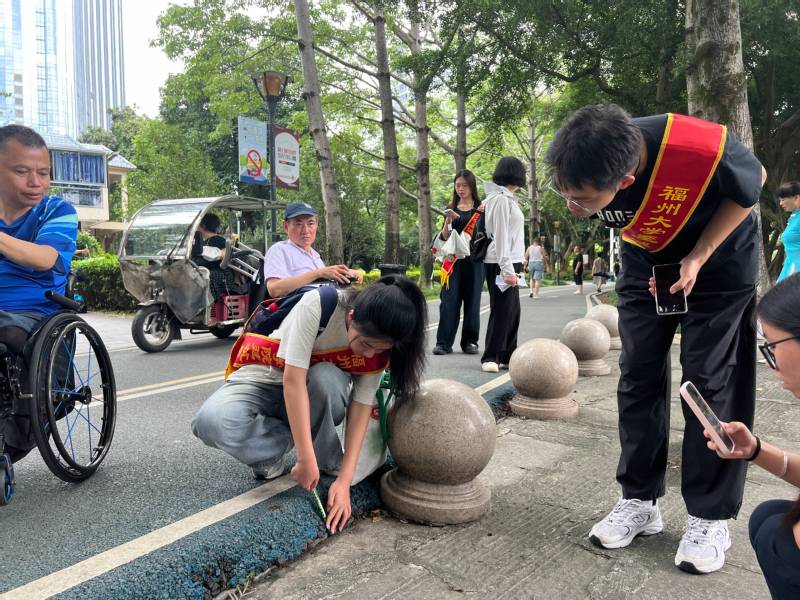 6月15日,六合彩开奖结果 建筑系“榕桥畅行实践队”成员联合福建省肢残人协会,于闽江北岸绿道开展无障碍环境体验与调研活动。