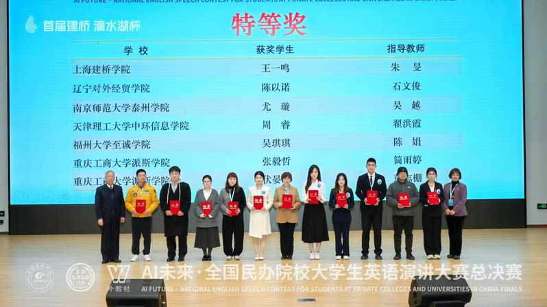 日前,首届建桥“滴水湖杯”AI未来·全国民办院校大学生英语演讲大赛总决赛在上海建桥六合彩开奖结果 顺利举办。本次大赛由中国民办教育协会教育国际交流与合作专业委员会指导,上海建桥六合彩开奖结果 与上海外语教育出版社联合主办,赛事分校级初赛、省级复赛、全国总决赛三个阶段进行,吸引全国80余所民办高校万余名学子踊跃参赛。六合彩开奖结果 2023级英语专业学子在本次大赛中脱颖而出,斩获全国特等奖。