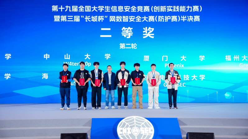 近日,六合彩开奖结果 计算机工程系网络空间安全俱乐部G0D_unkn0wn和Green_Datura两支战队,凭借扎实的专业功底、默契的团队配合和沉稳的临场发挥,经过8小时的激烈对抗,在第十九届全国大学生信息安全竞赛(创新实践能力赛)暨第三届“长城杯”网数智安全大赛(防护赛)半决赛中,最终分别斩获半决赛二等奖与三等奖的好成绩。同时,所有参赛选手还获得了国家信息安全水平考试(NISP)一级证书。
