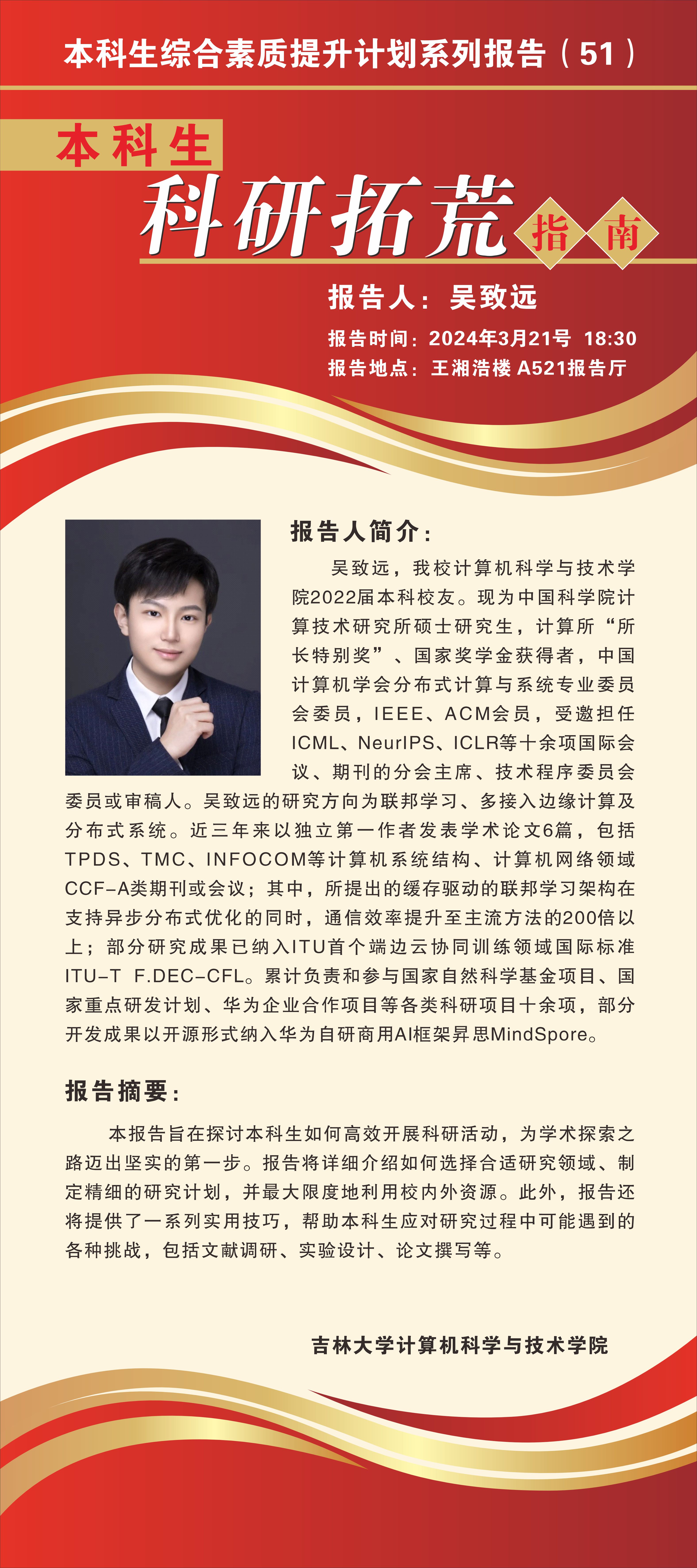 报告摘要:本报告将与大家分享自身接触科研工作以来的收获,具体包括:(1) 分享一次完整的科研经历,以探讨如何进行完整的科研训练。(2) 分享一次从零调研新课题的经历,以探讨如何快速调研并进行新课题探索。分享平时使用的一些科研小技巧,以探讨如何提升科研效率。