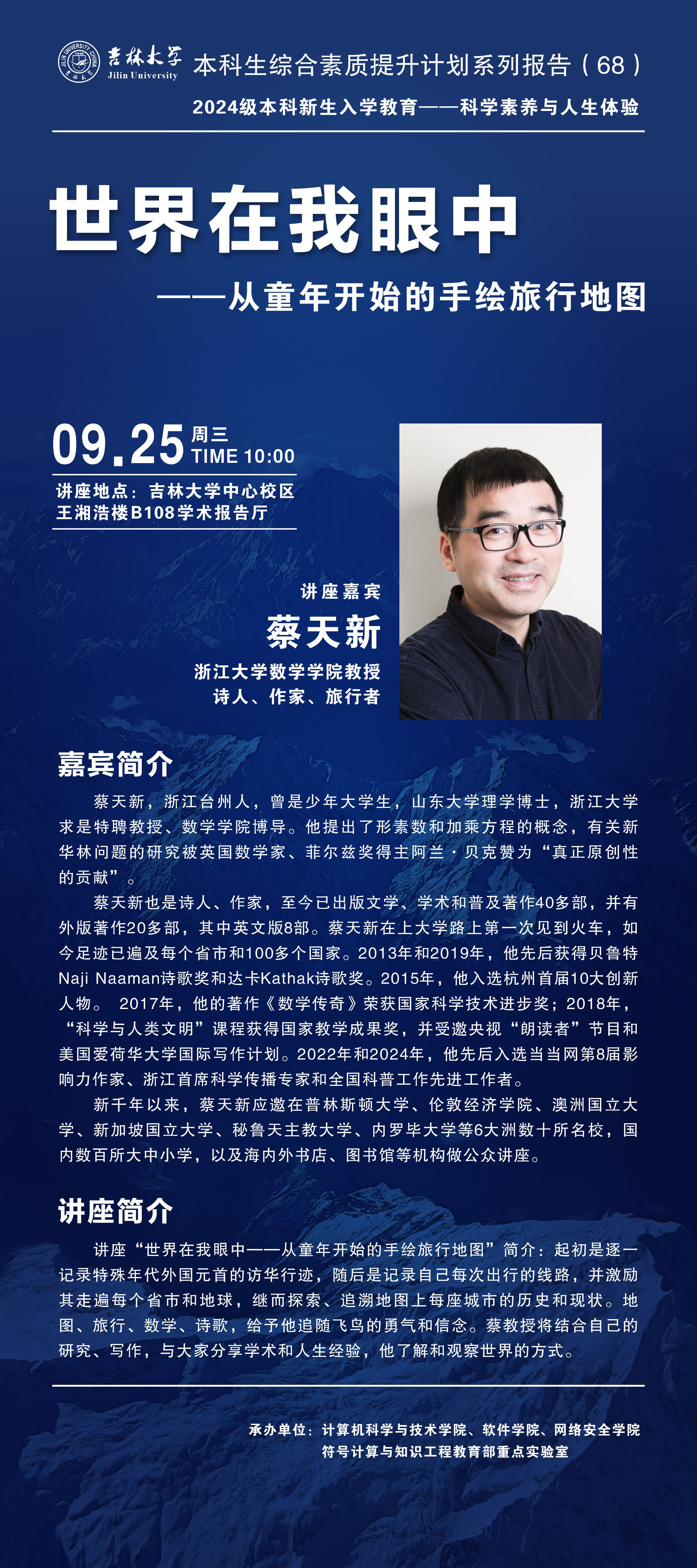 计算机六合彩开奖结果 本科生综合素质提升计划系列报告(68)——浙江大学蔡天新教授科学素养专题报告