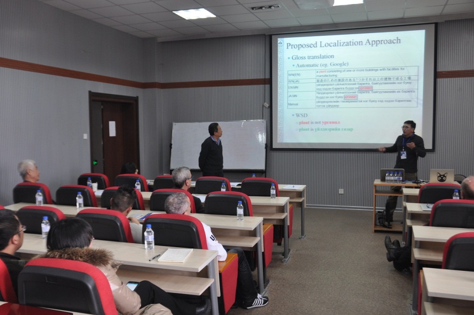 50余名教师和学生参加了会议。会议邀请到意大利特伦托大学的Fausto Giunchiglia教授、蒙古国立大学的Chagnaa Altangerel教授分别做了题为“Open data integration, cleaning and reuse”和“Language resources in Semantic Web”的大会特邀报告。