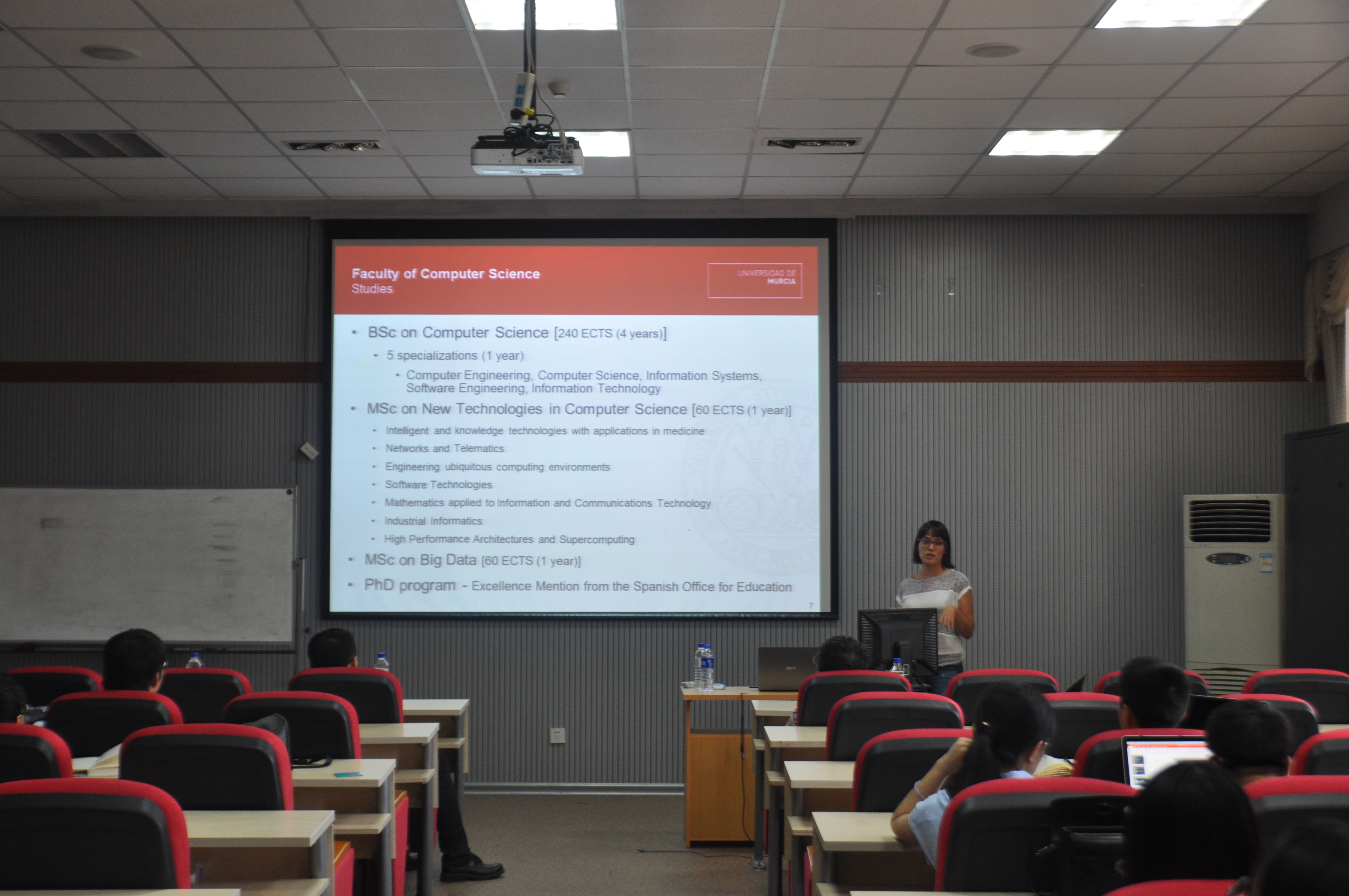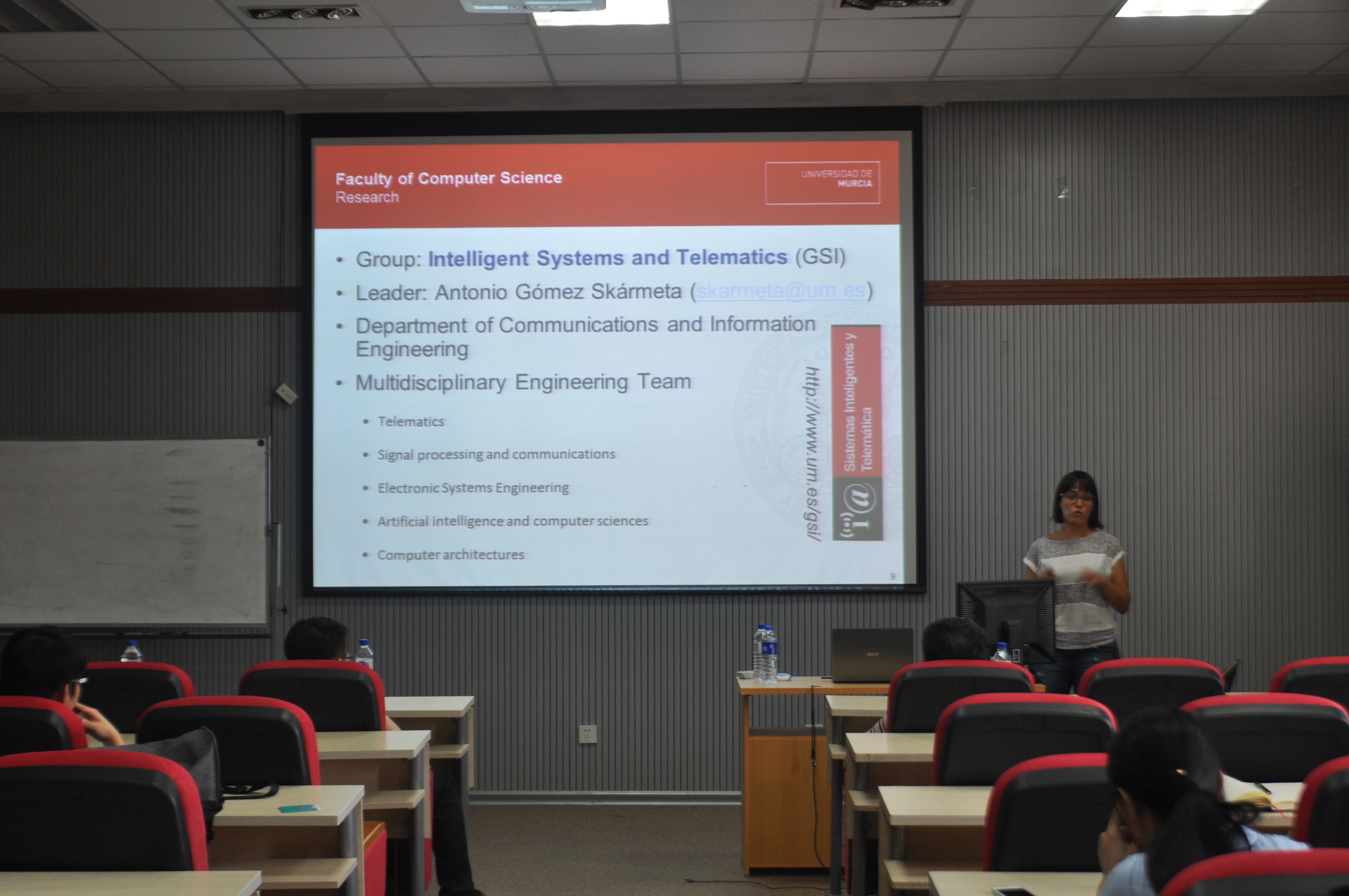的师生作了题为“A platform towards IoT interoperability and security in smart cities”的学术报告。Victoria Beltran博士是University of Murcia的资深研究员,先后在哥伦比亚大学、贝尔实验室等研究机构工作,在电信研究方面有着丰富的实践经验。