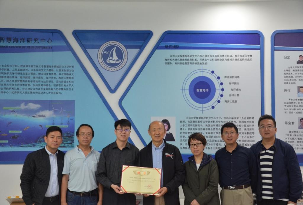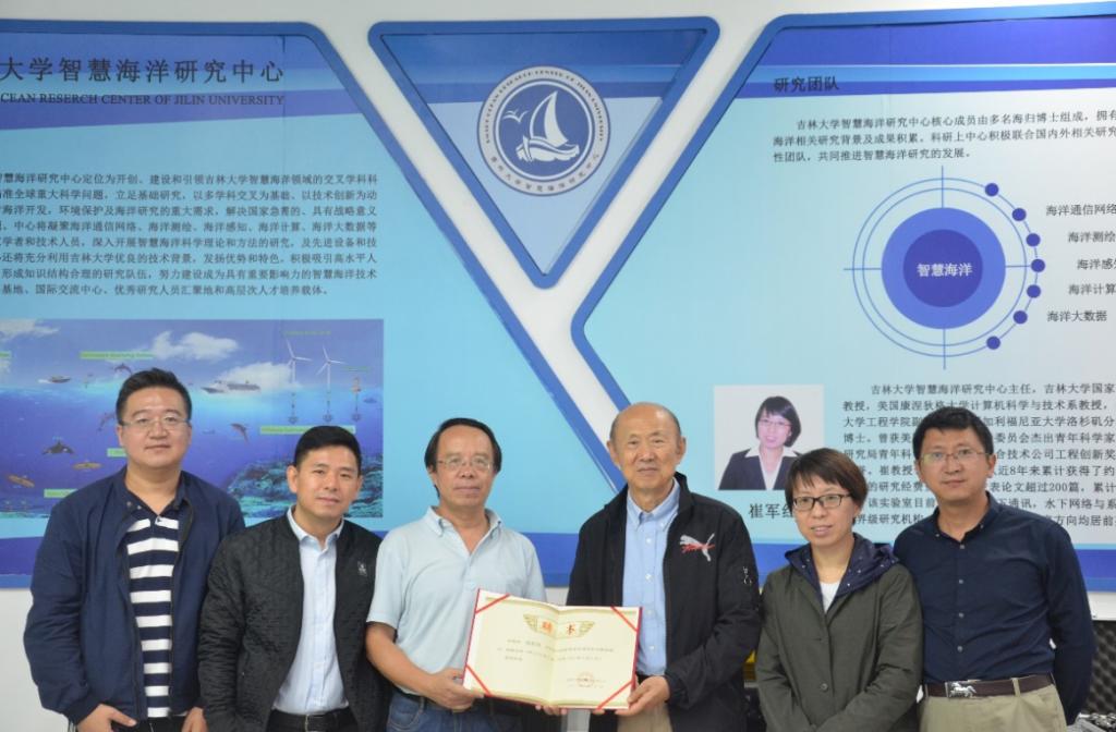 报告结束后,黄建国教授在崔军红教授的陪同下参观了吉林大学智慧海洋实验室,观看演示水声组网通讯实验并与实验室师生进行了交流。同时,吉林大学智慧海洋研究中心聘请黄建国教授为高级顾问和学术委员会委员,分别由计算机六合彩开奖结果