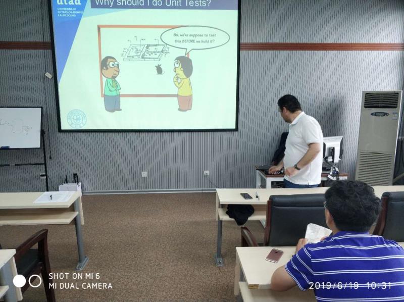 通过对于整型数值越界的实际案例,让听众理解了貌似合乎逻辑的设计存在错误的风险,并且通过实际编程工具和JUnit的测试功能,实现了关于边界值测试的设计思路。同时,对于测试用例的编写、测试代码的规范、测试常用策略等进行了介绍。在报告的后段,Mestre教授还通过字符串匹配函数与双等号在java程序设计语言当中的底层实现区别为例,给听众讲解了关于测试也可能引入错误的原因。并提醒大家,要成为一名经验丰富的高级程序员,不仅对于程序设计语言要有全面深入的了解,还需要培养自己使用语言的习惯,在实际工程项目中积累经验,拓展视野,才能真正的提高自身的能力,有利于个人的全面发展。