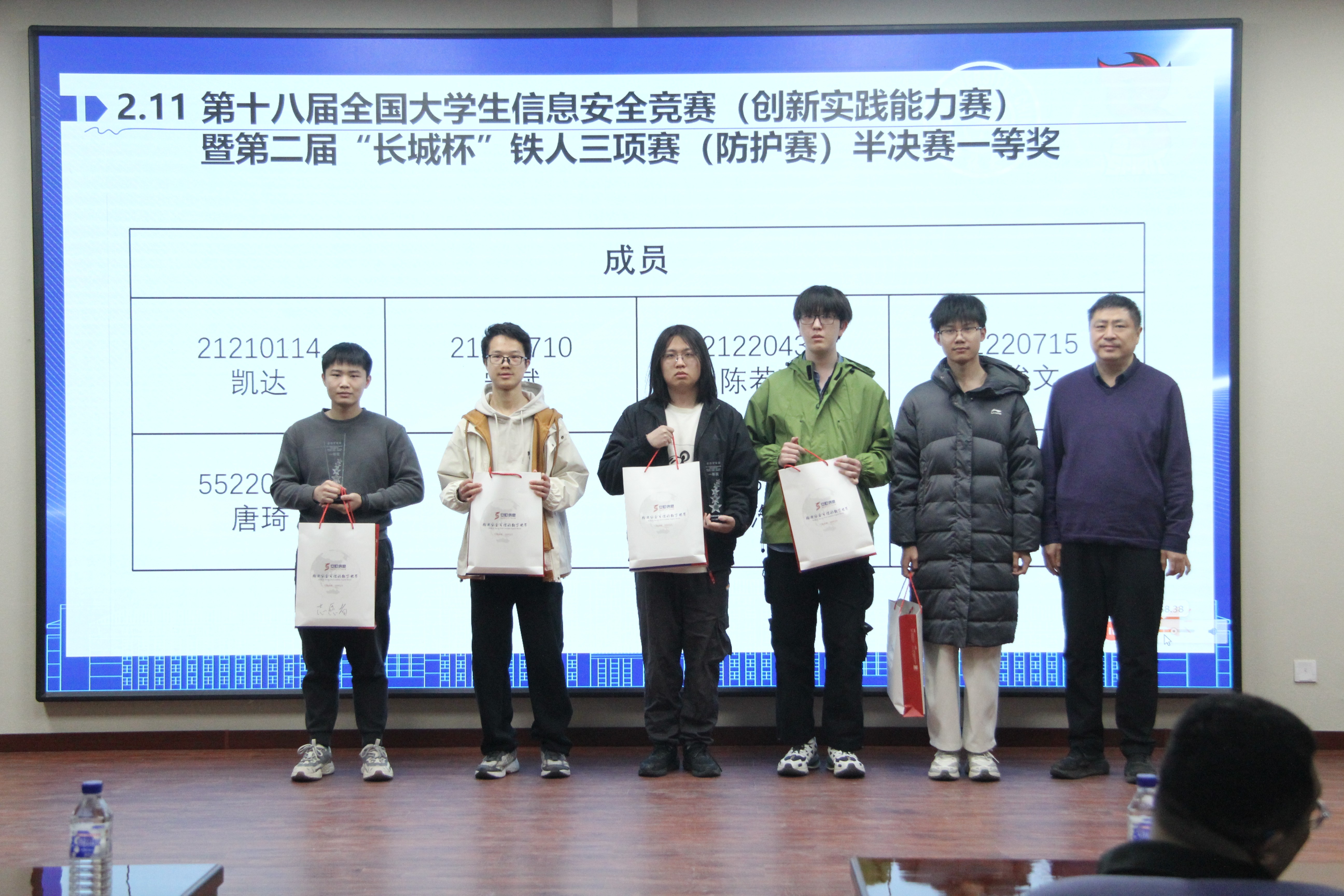 为目标,持续深化教学改革,强化实战能力培养,广泛开展校企合作,为国家网络安全发展培养更多高素质实战化多学科复合型人才。本次表彰仪式也是对同学们在竞赛与实践中的优异表现的充分肯定,同时也勉励大家以此为起点,奋勇拼搏,再创佳绩。