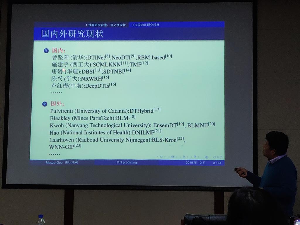 2019年12月13日下午15:30,郭茂祖教授在吉林大学计算机楼A521作了题为“基于聚类分析的药物-靶标互作关系预测方法”的学术报告。