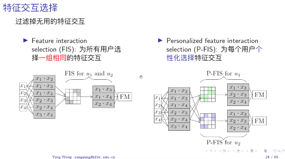 在讲座中,王杨老师首先介绍了因子分解机的定义及应用(包括推荐、搜索、分类等)。随后,王杨老师介绍了近期针对因子分解机的进展,包括特征交互选择任务,基于贝叶斯变量选择的通用,贝叶斯特征选择模型,以及如何有效解决个性化特征交互选择及高阶特征交互选择等一系列问题的研究进展及所在团队围绕基于贝叶斯模型的因子分解机开展的一系列工作。