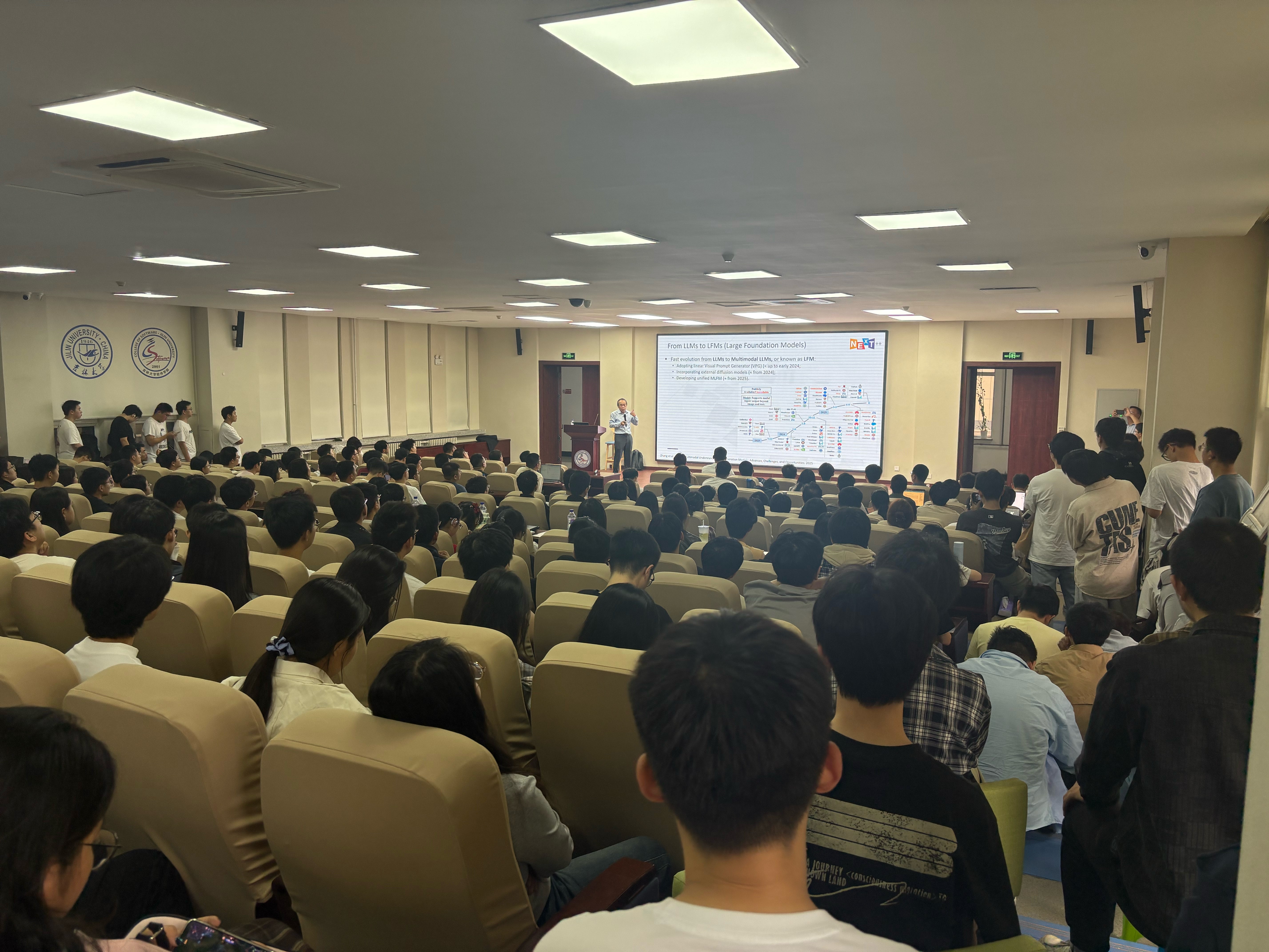 讲座中,Chua Tat-Seng院士回顾了人工智能(AI)的发展历程,他指出,随着深度学习与大型基础模型(LFM)的兴起,AI在过去十年取得了主导地位,但近期其增长势头趋于平缓,一个依靠资金投入解决研究问题的时代或将结束。展望未来,Chua Tat-Seng教授预测,基于学科的深度研究将重新成为主流。他重点阐述了两个研究方向:一是准确性、多样性、持续学习与质量评估;二是系统的鲁棒性、信任与安全。他强调,未来的研究应致力于揭示LFM内部的潜在知识,并构建更优的多模态对齐、持续学习及可信安全的AI代理应用框架。在互动交流环节,Chua Tat-Seng教授与现场师生就大型基础模型的未来研究方向、青年学者面临的机遇与挑战以及如何构建可信AI等问题进行了深入交流,现场气氛热烈。他鼓励同学们扎根基础研究,勇于探索未知,为推动人工智能领域的健康发展贡献力量。